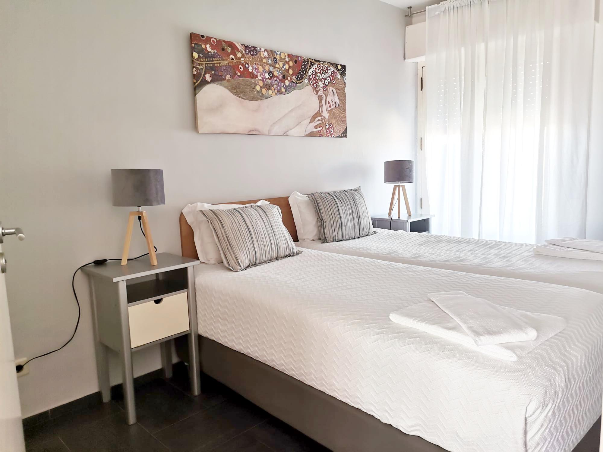 This apartment features one room with two single beds and a sofa bed at the living room.
