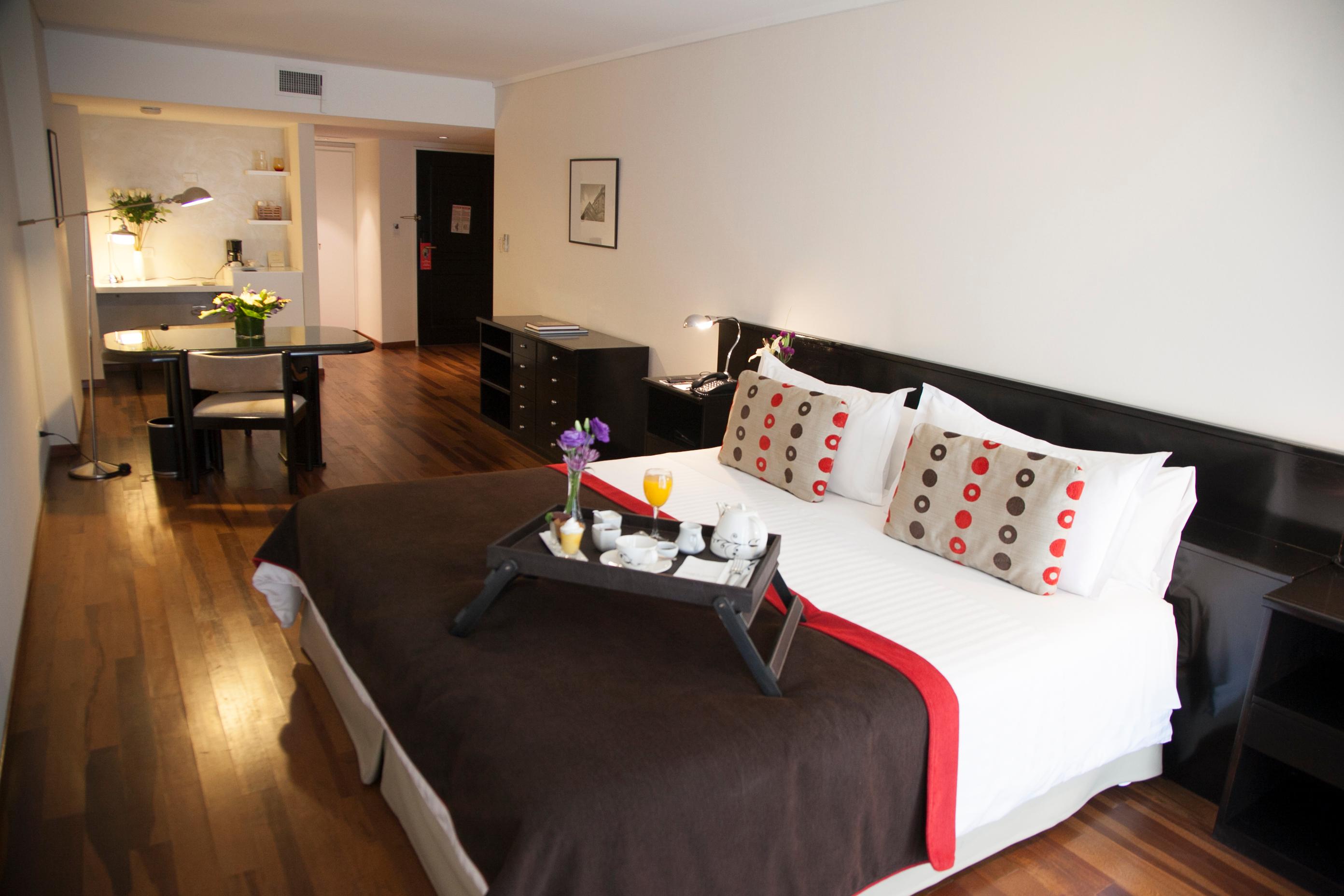 With an area of 50 m², our Premier Suite overlooks the quiet part of the building. Has a master bedroom and a living room that includes a three-seater sofa and a dining table, separated from the bedroom by a dividing door, ideal for receiving visitors; it also features double glazed windows for noise reduction. These suites also have air conditioning hot / cold, cable TV and minibar.