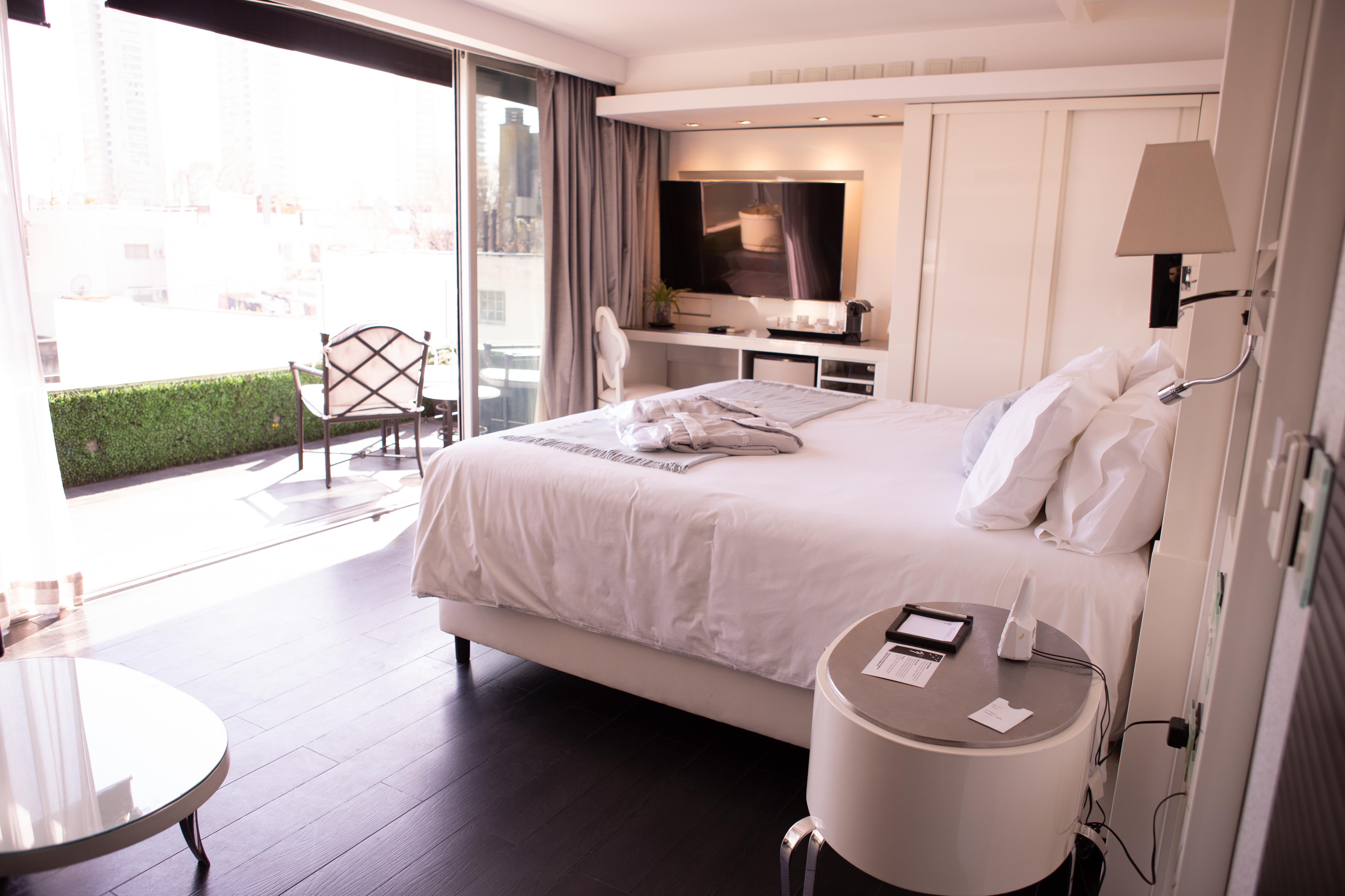Our two exclusive 46-square-meter suites offer an unparalleled sophisticated and charming atmosphere, with special luxury and comfort details:• 55” 3D Smart TV with swivel wall-mount to watch your favorite TV shows from the fabulous king-size bed or from a comfortable black leather armchair.• A large balcony with views to the trendy Palermo Soho neighborhood.• Outdoor Jacuzzi bathtub.• Large dressing-room.• Premium amenities.• Sofa bed (0.70m x 1.90m), recommended for children up to 12 years old.